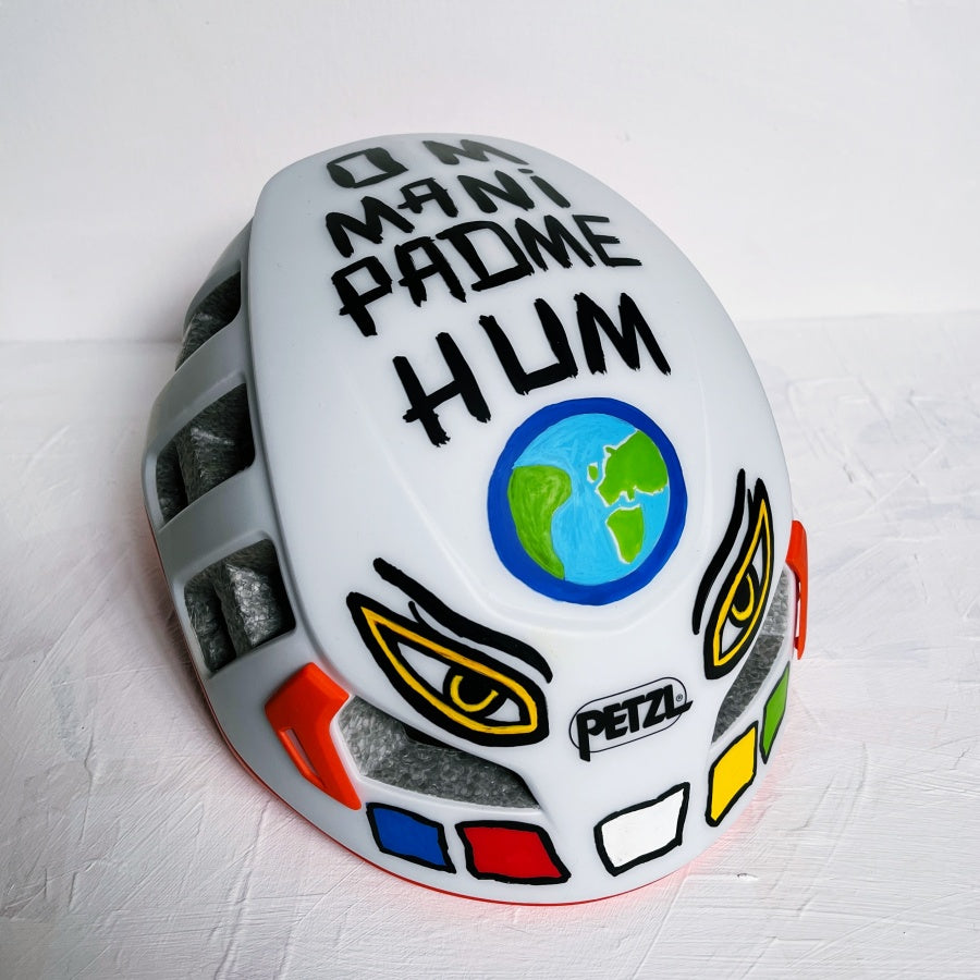 Kenton Cool's hand-painted protective headgearfor his 2022 record breaking 16th summit of Mount Everest