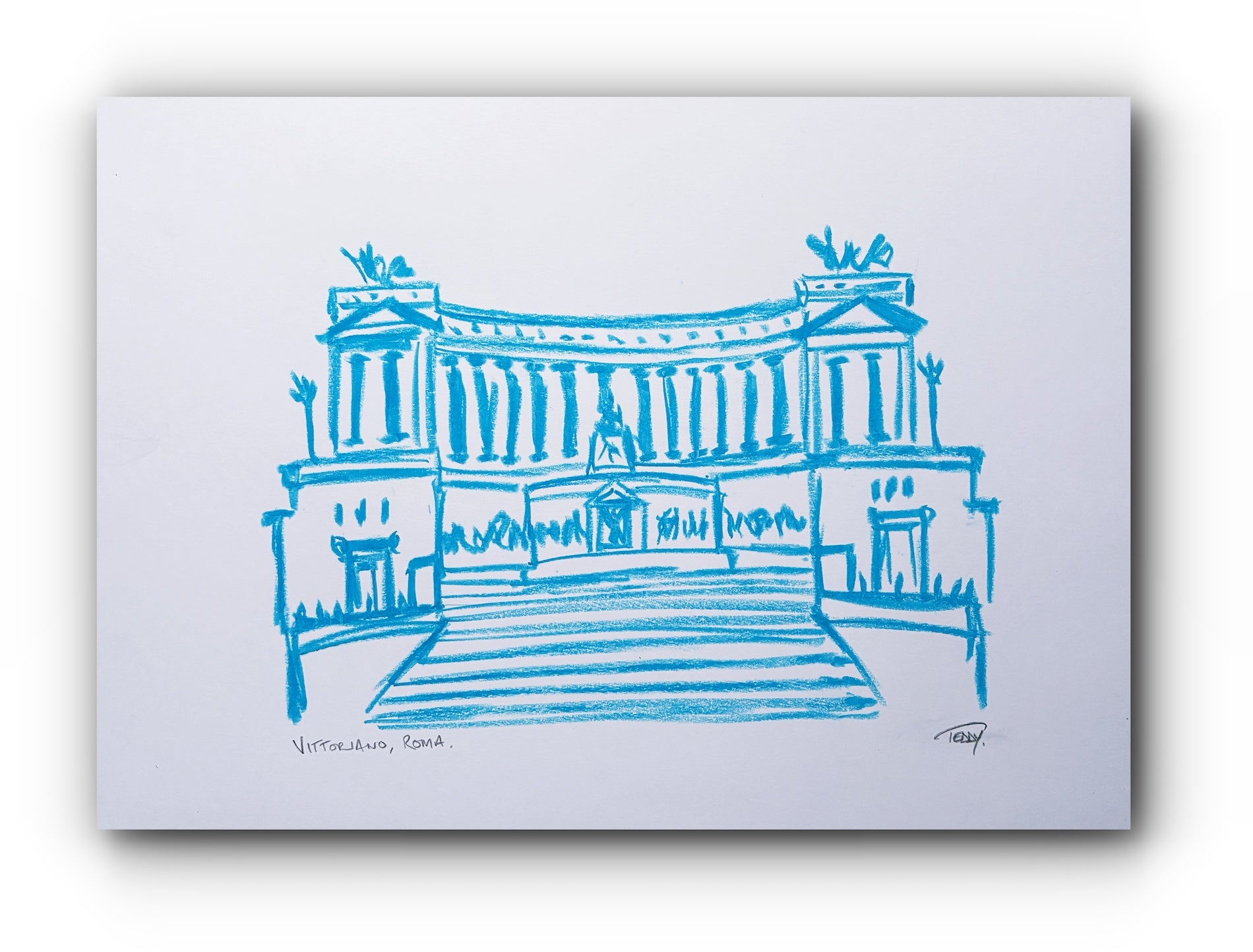 Medium: Archival quality pigment inks on 310gsm textured paper with hand-embellished 'ROMA' and elements of the outline in oil pastel.